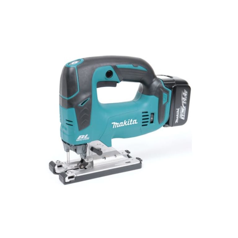 マキタのJV142DRFは、14.4Vリチウムイオンバッテリーを搭載したコードレスジグソーです。最大切断速度は3,500回/分で、木材や金属などの素材を効率的に切断します。6段階の速度調整機能により、作業内容に合わせて最適な切断を実現しています。さらに、角度調整機能があり、精密な斜め切断が可能です。LEDライトを搭載しており、作業面を明るく照らして視認性を向上させ、快適な作業をサポートします。軽量でコンパクトなデザインで、長時間の使用でも疲れにくい設計のジグソーです。